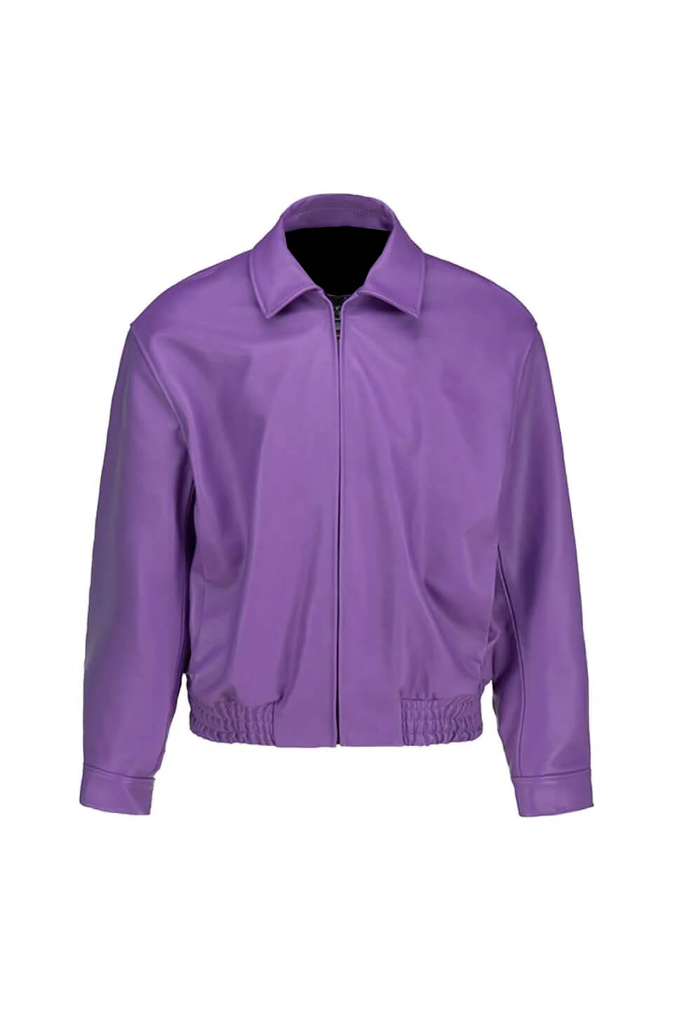 A Few Good Kids Purple Clock Bomber Leather Jacket
