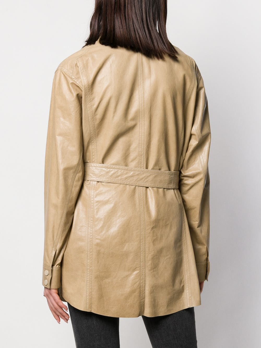 Beige Calf Leather Overshirt Belted Jacket specification: