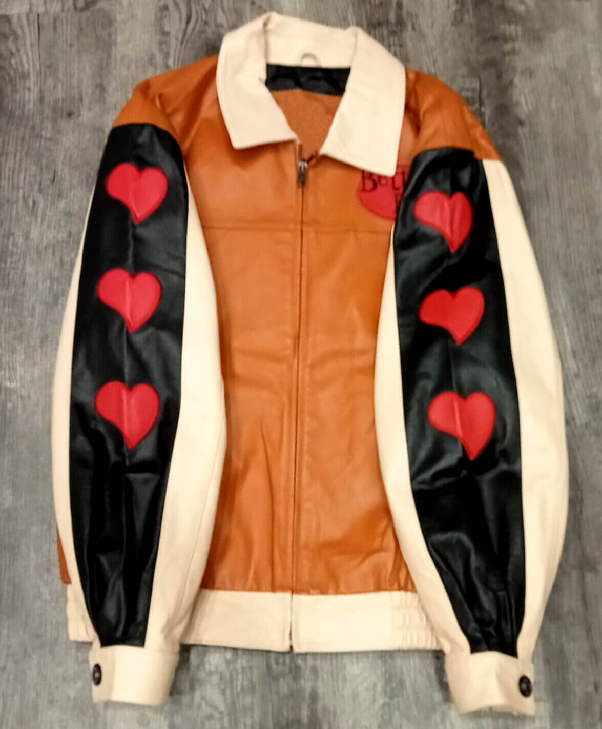 But what truly sets this jacket apart is its bold and playful design. The “Betty Boop” spell on the left chest, three heart shapes on each sleeve, and the iconic Betty Boop cartoon with a spell on the back will make you the envy of all who lay eyes on you. This jacket is not just a fashion statement, but a declaration of your confidence and individuality.