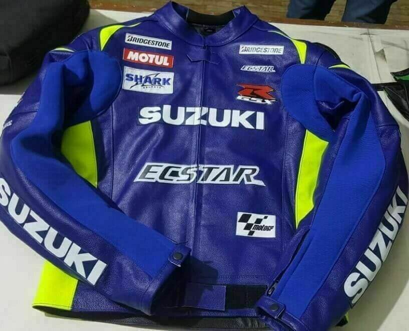 Blue Suzuki Ecstar Motorcycle Leather Racing Jacket