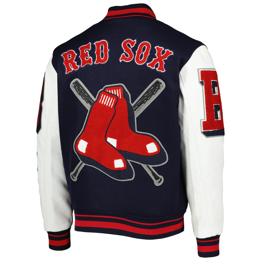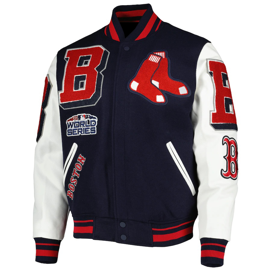 This Boston Red Sox Navy White Varsity Jacket is made from high-quality wool material. The jacket is available in glorious navy and white color which gives it an innovative and enchanted look. The collar of the jacket is a rib knit collar. It has a snap front closure. The soft viscose inner lining of the jacket keeps you warm and relaxed. This Boston Red Sox Varsity Jacket has full-length sleeves that end with rib knit cuffs. The jacket has two front pockets for keeping stuff. The top-quality stitching of the Boston Red Sox Varsity Jacket makes it durable and desirable to wear.