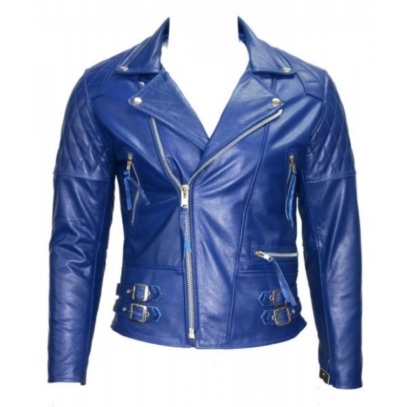Brando Electric Blue Biker Leather Jacket