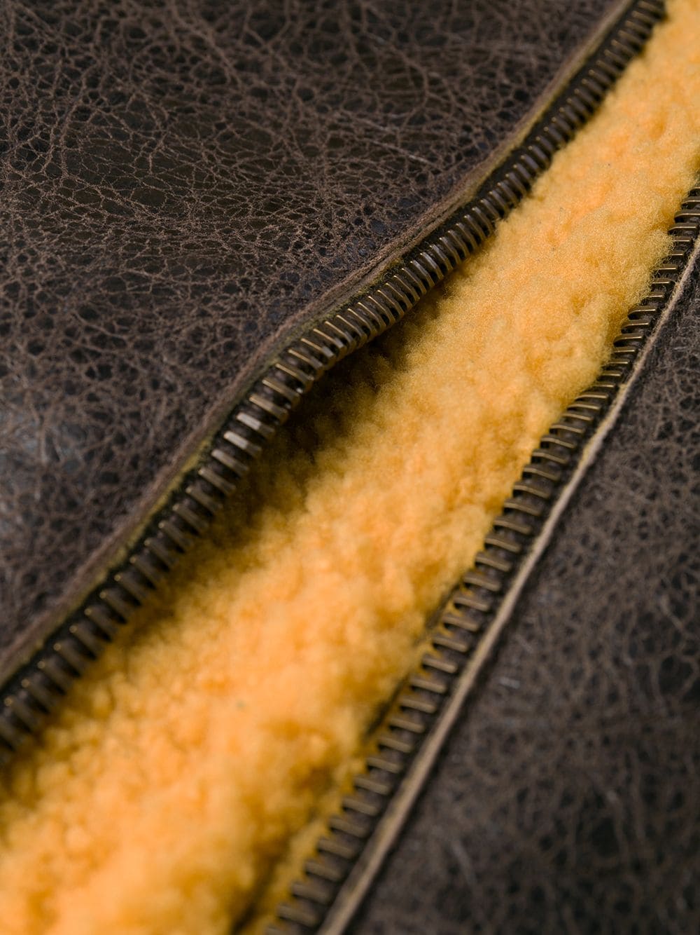Brown Leather Shearling Lined Hooded Jacket Specification: