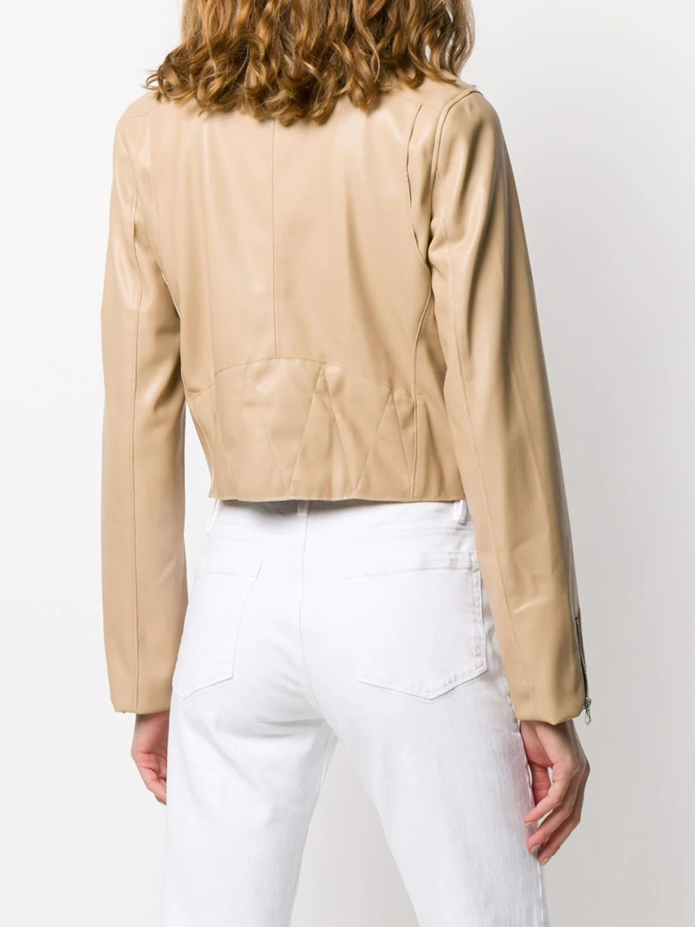 Cappuccino Brown Jacey Faux-Leather Biker Jacket specification: