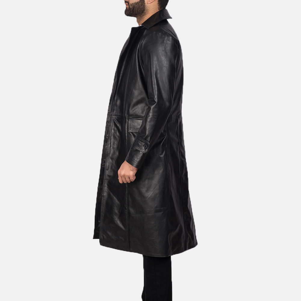 This “Clarent Black Leather Long Coat” made from high-quality Leather material, this coat is designed to last and keep you comfortable. The Coat features a two side Patch pockets on the waist, and a Notch Lapel collar for added protection from the elements. so you can proudly display your pride. The interior is lined with a soft and comfortable viscose lining, making it perfect for layering over your favorite Coat. Whether you’re heading to the game or just out for a night on the town, this coat is sure to keep you looking and feeling your best.