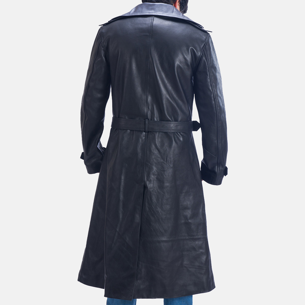 Enigma Black Leather Trench Coat
