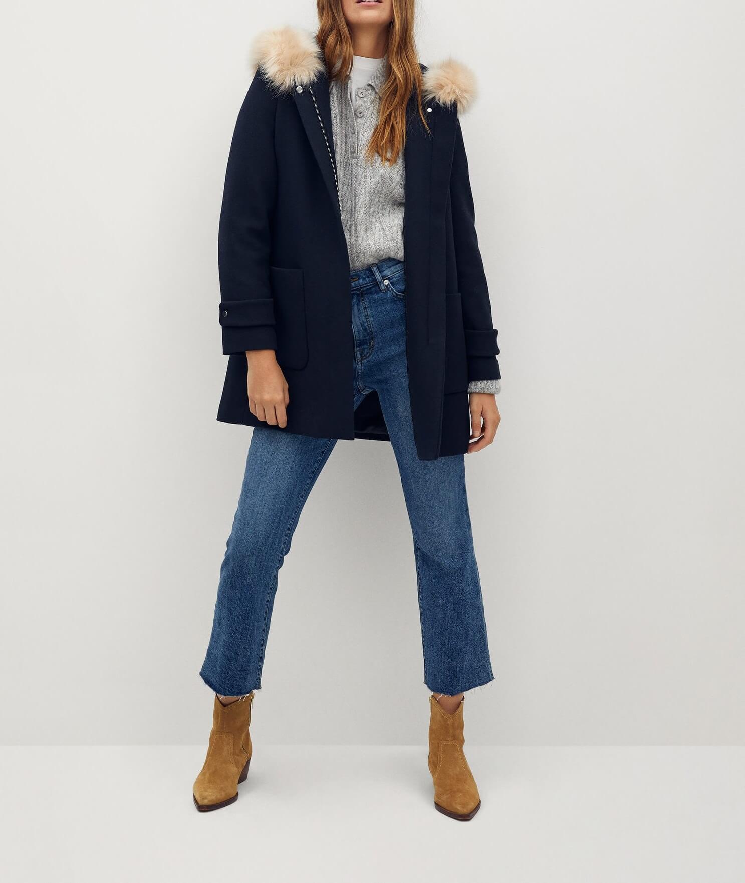 You can revamp the wardrobe with this Faux Fur Black Hooded Coat. This is sophisticatedly designed with Wool and inner viscose lining to make it more comfortable to wear.