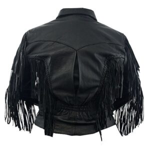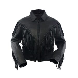 You can revamp the wardrobe with this Fringe Metallic Gold 80s Vintage Leather Jacket. This is sophisticatedly designed with Leather and inner viscose lining to make it more comfortable to wear.