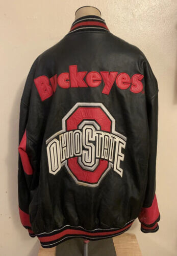 The jacket is made from high-quality leather, providing durability and a luxurious feel. Its red and black combination color scheme exudes a sense of team spirit and adds a bold touch to your outfit. The Ohio State Buckeyes logo on the left chest and back proudly displays your loyalty, while the “Buckeyes” Spell on the back makes a striking statement.