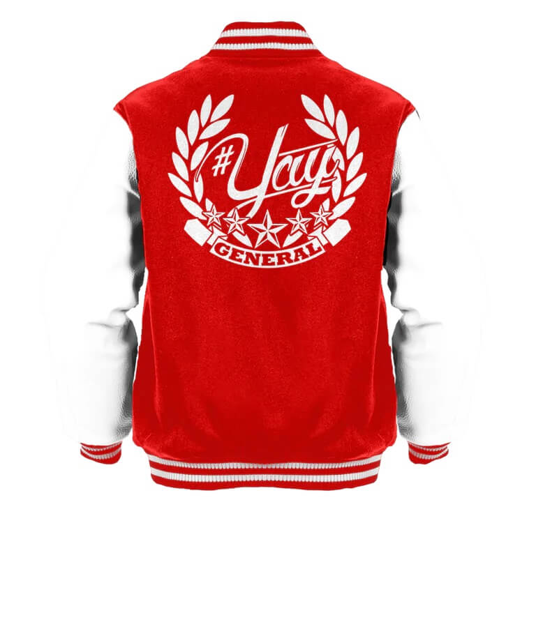 This General Yay Red White Diamond Varsity Jacket is made from high-quality cotton material. The jacket is available in glorious red and white color which gives it an innovative and enchanted look. The collar of the jacket is a rib knit. It has a snap front closure. The soft viscose inner lining of the jacket keeps you warm and relaxed. This General Yay Varsity Jacket has full-length sleeves that end with rib knit cuffs. The top-quality stitching of the General Yay Varsity Jacket makes it durable and desirable to wear.