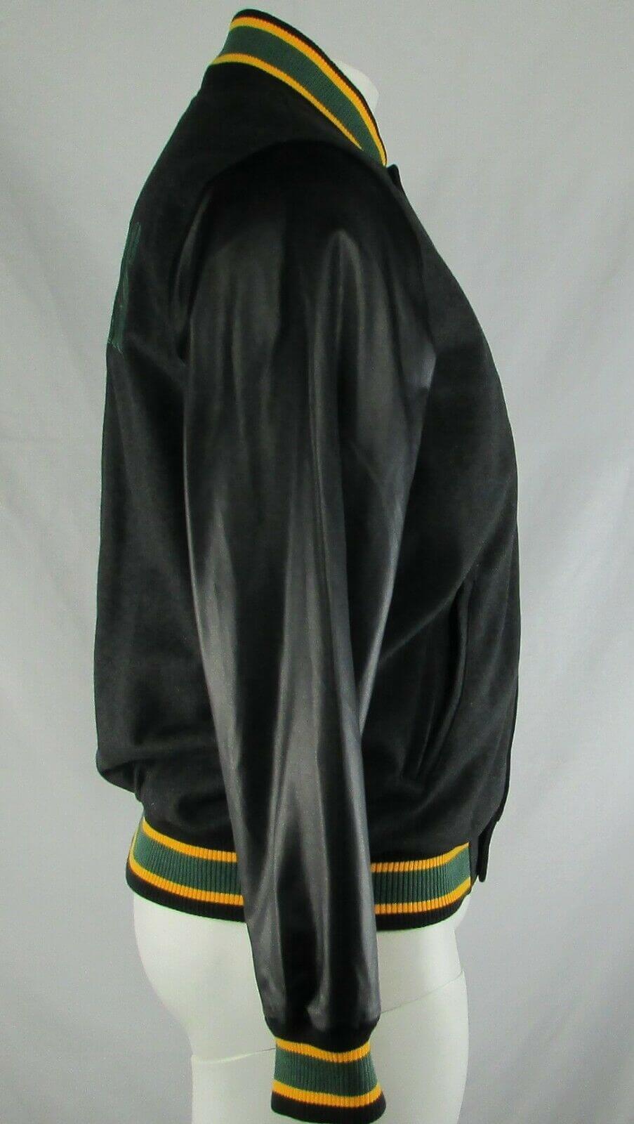 This “Green Bay Packers Team Black Varsity Jacket” is made from high-quality wool material. It has an inner lined soft and comfortable viscose stitched that keeps you warm in the cold and chilly weather. The Green Bay Packers Jacket has a front Branded YKK Zipper Style with Snap Flap for its closure with a Rib Knitted Collar that makes it a retro classic. The Green Bay Packers Jacket is available in a stylish black color that gives it a smart and casual look. The Rib Knitted cuffs also look attractive. The Jacket is durable to wear due to its fine quality stitching. What are you waiting for? Grab this appealing piece and step towards the world of fashion.