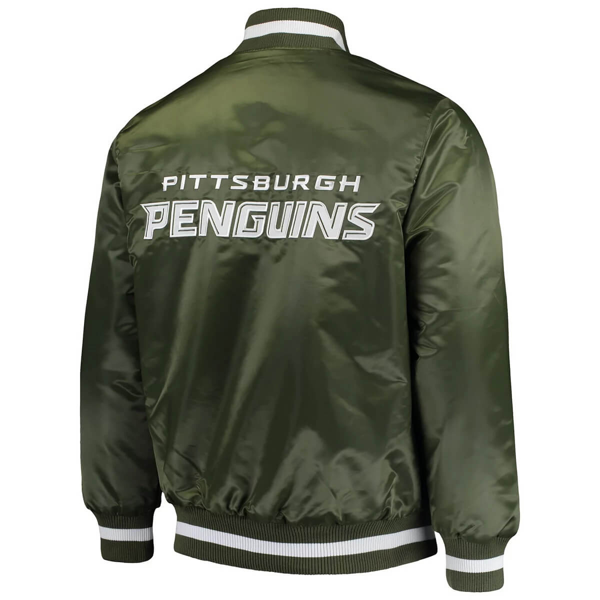 You can revamp the wardrobe with this Green Pittsburgh Penguins Satin Jacket. This is sophisticatedly designed with Satin and inner viscose lining to make it more comfortable to wear.