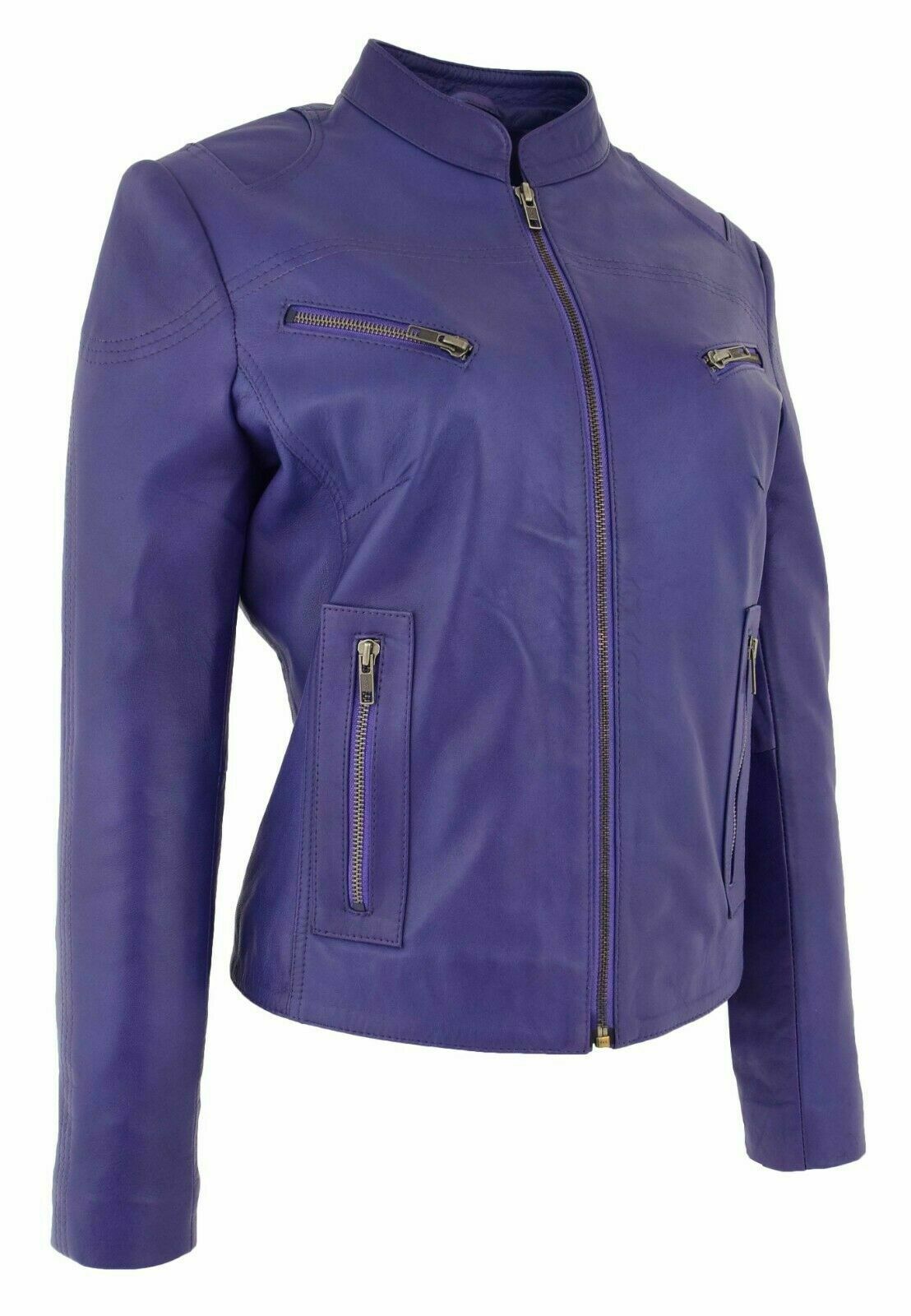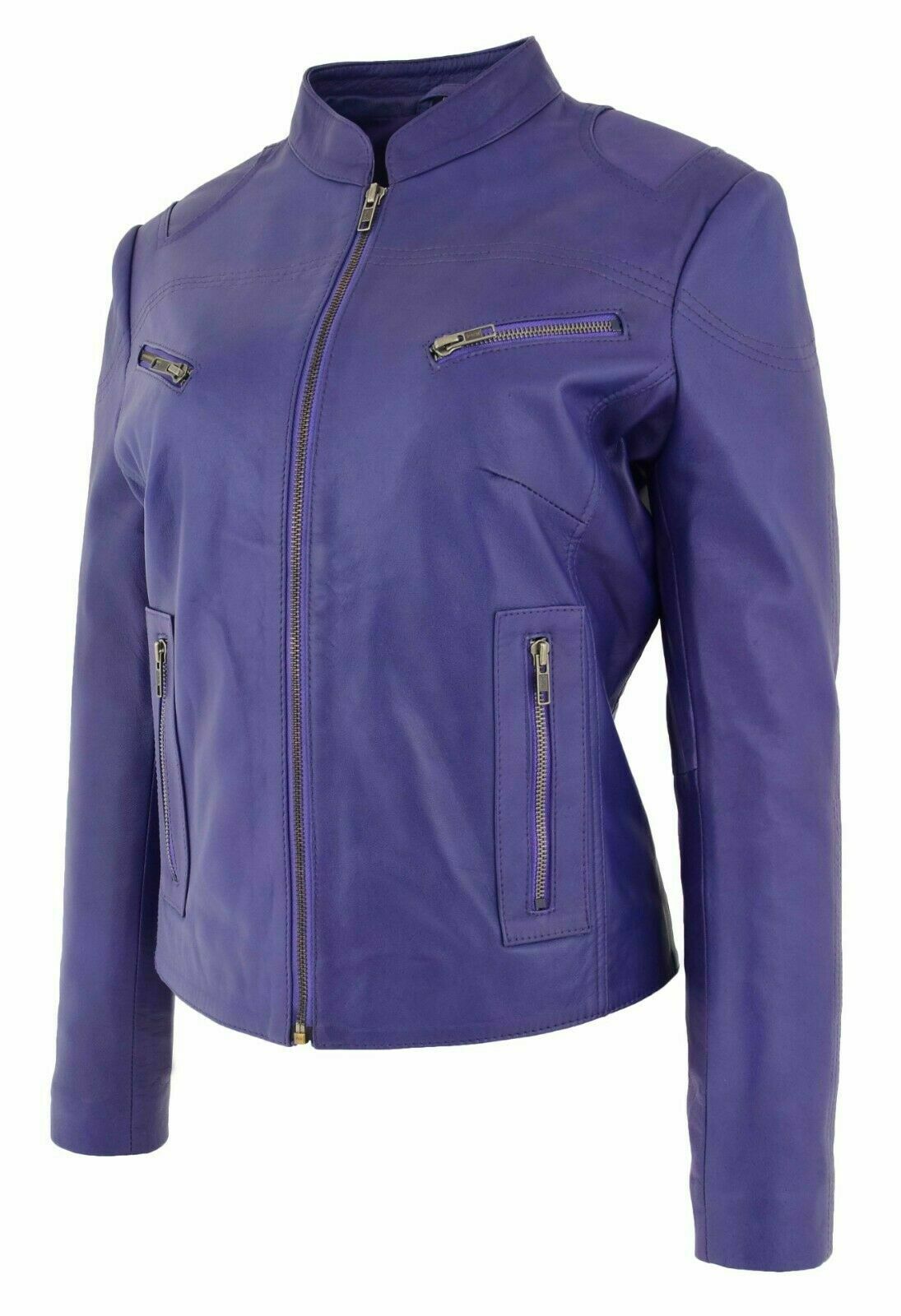 Handmade Purple Leather Biker Slim Fit Jacket specification:
