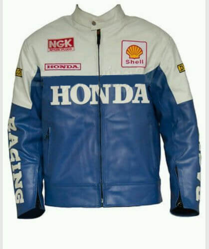 “Honda Motorcycle Blue And White Leather Jacket” For Biker is especially design and stitch for bike riders. This is a perfect design motorcycle Safety Biker Jacket. It is not only designed awesome but also equipped with top-quality safety.