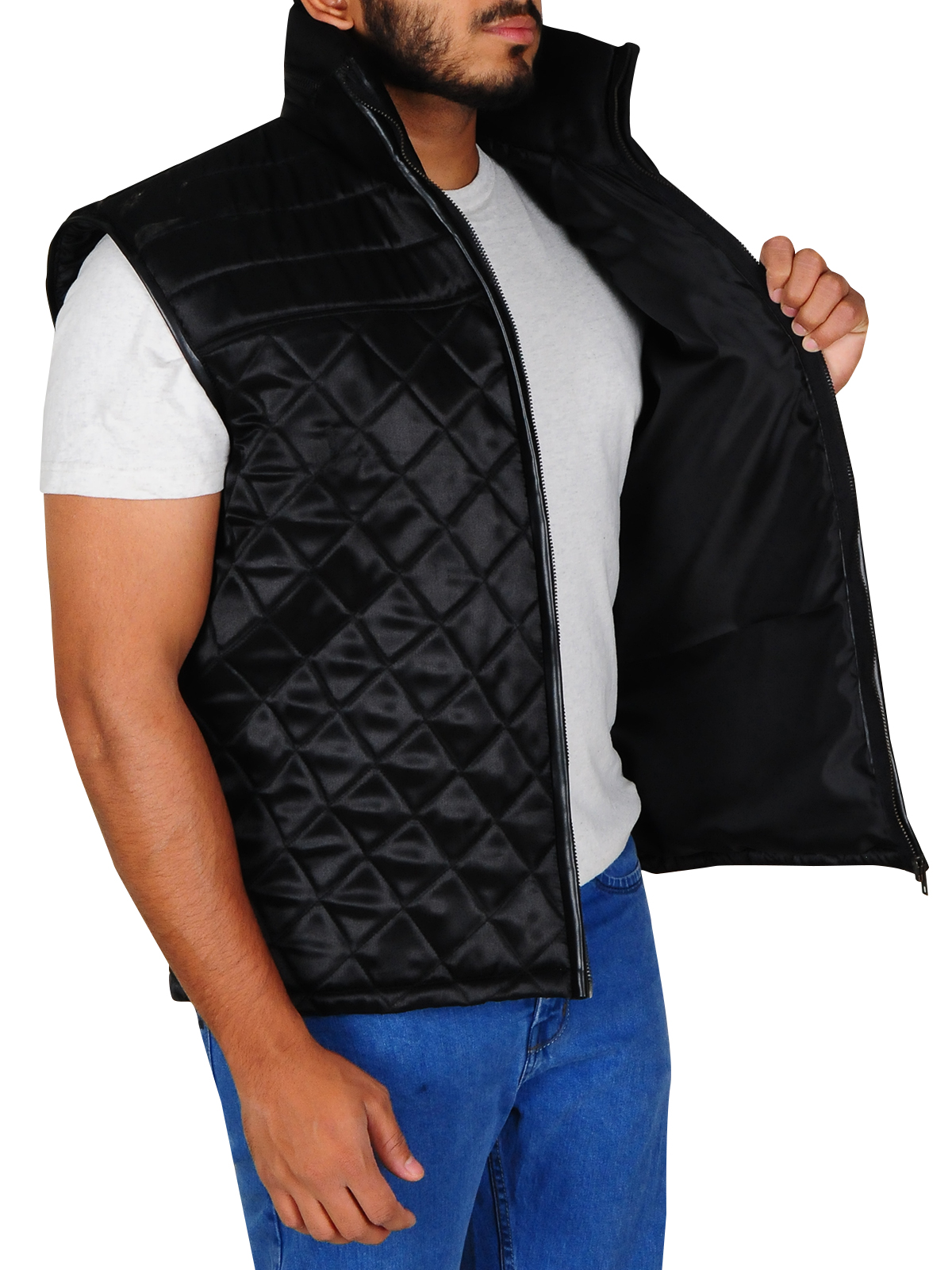 The John Felix Anthony Cena Jr Vest is black in color. It is made out of satin fabric and has an internal pocket on the inside that you can use to carry small personal items in. In addition to this, the John Felix Anthony Cena Jr Vest has an internal viscose lining that makes it quite comfortable to wear, and a branded zipper at the front for closure that adds to its chic design. Place your orders now!