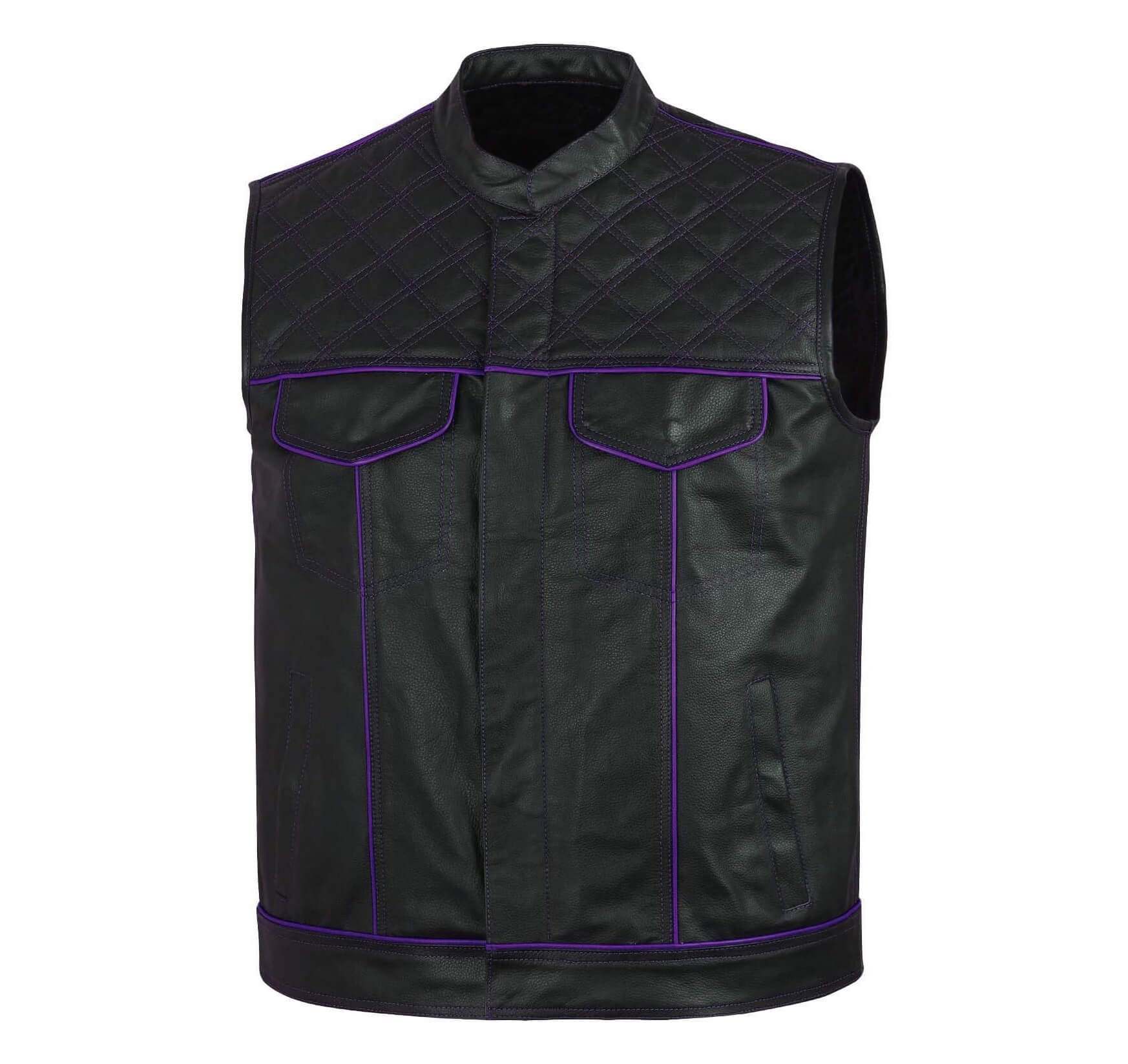 Men’s Black Purple Quilted Style Leather Vest