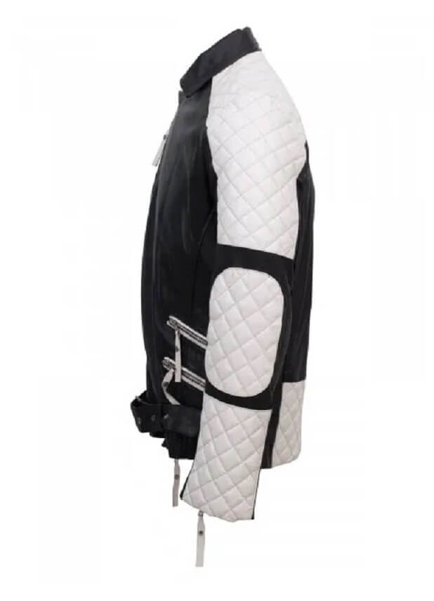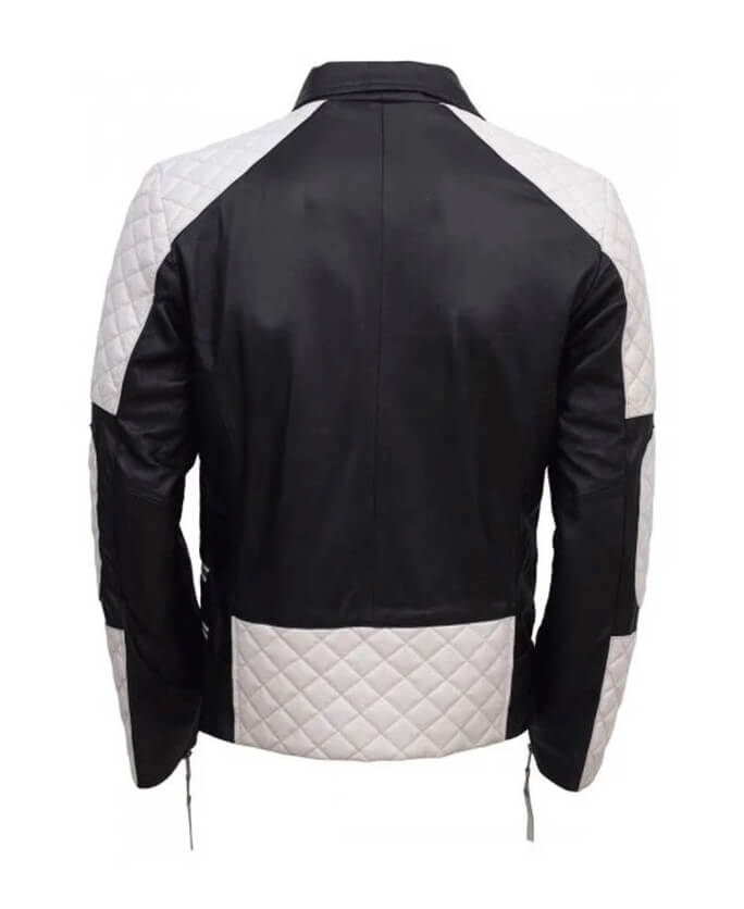 Men’s Black White Quilted Style Biker Leather Jacket