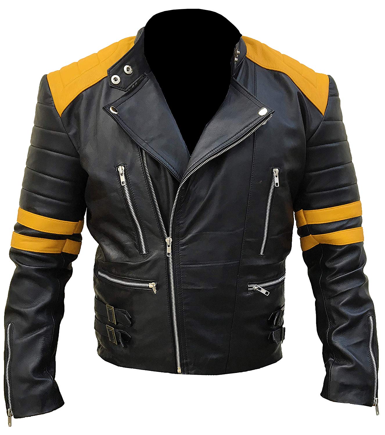 Men’s Classic Biker Yellow and Black Leather Jacket