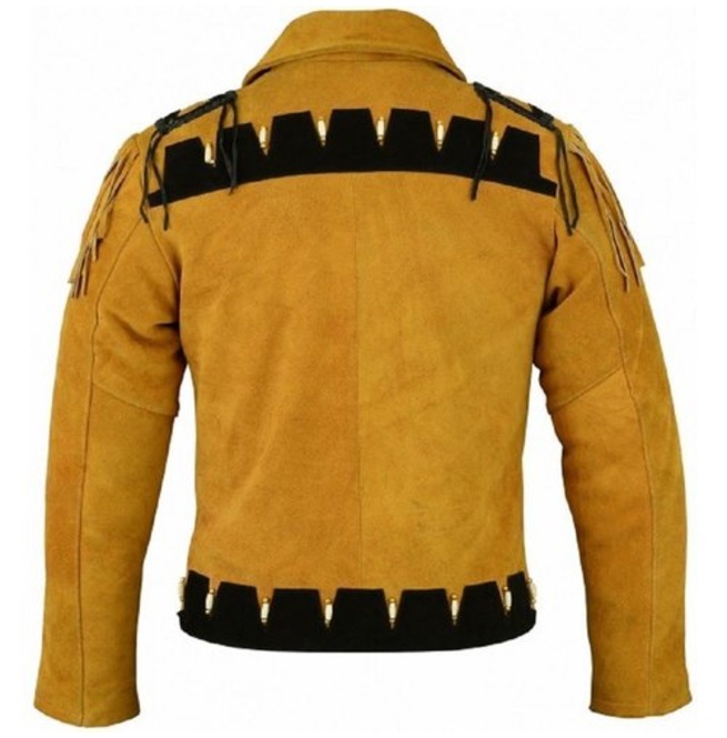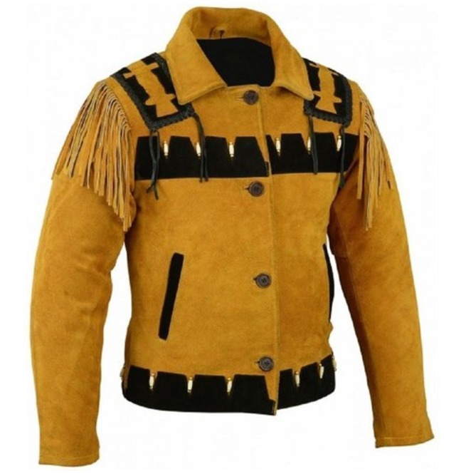The sleeves of the Men’s Western Cowboy And Suede Leather Jacket are long and fitting with open hem cuffs and fringes on the shoulders. The jacket is perfect for parties. The jacket is highly sought after by fans for its omnibus appealing features and fine quality stitching.