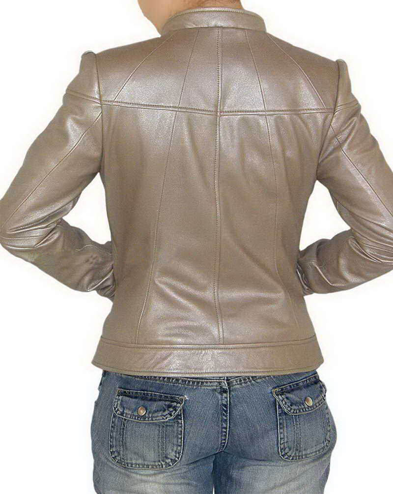 You can revamp the wardrobe with this Metallic Brown Leather Women’s Jacket. This is sophisticatedly designed with Leather and inner viscose lining to make it more comfortable to wear.