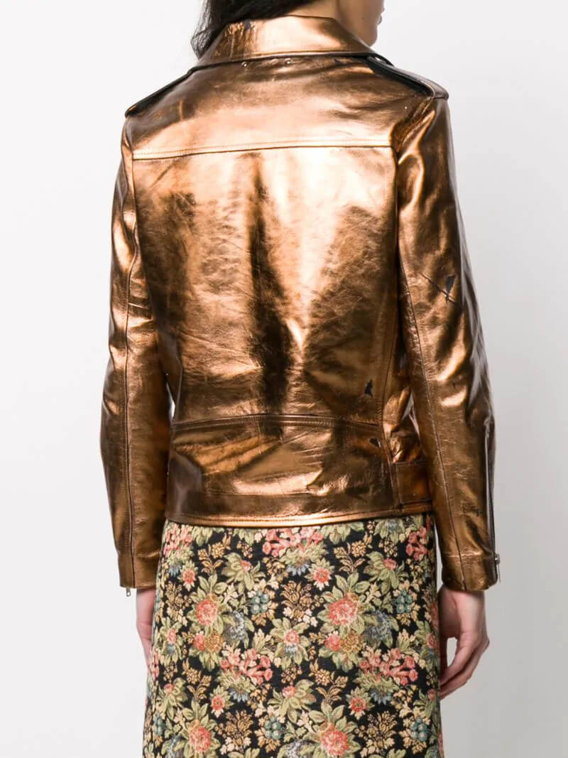 Metallic Sheen Leather Biker Jacket