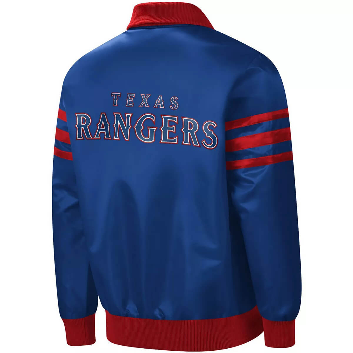This “MLB Team Texas Rangers Blue Satin Jacket” is made from high-quality satin material. It has an inner lined soft and comfortable Viscose stitched that keeps you warm in the cold and chilly weather. It has a front YKK Branded Zipper Style for its closure with a Shirt Style collar that makes it a retro classic. The Jacket has a Blue and Red color that makes it stand out. The Rib knitted cuffs and Rib knitted hemline also look attractive. The Jacket has Two side Handwarmer pockets. The Texas Rangers Logo on the left chest looks very beautiful. The jacket is durable to wear due to its fine quality stitching.