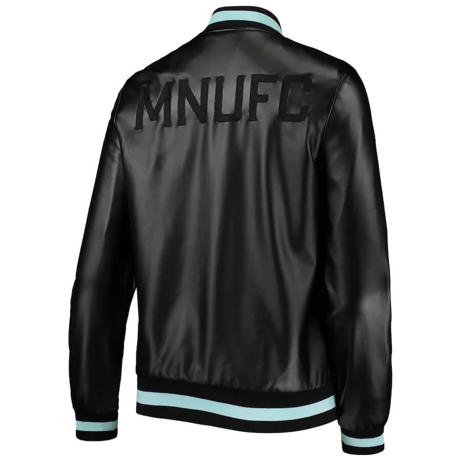 This “MLS Team Minnesota United FC Black Leather Jacket” is made from high-quality leather material. It has an inner lined soft and comfortable Viscose stitched that keeps you warm in the cold and chilly weather. It has a front Button Style for its closure with a Rib knitted collar that makes it a retro classic. The Jacket has a Black color that makes it stand out. The Rib knitted cuffs and Rib knitted hemline also look attractive. The Jacket has Two Side Handwarmer pockets. The Minnesota United FC Logo on the left chest looks very beautiful. The jacket is durable to wear due to its fine quality stitching.