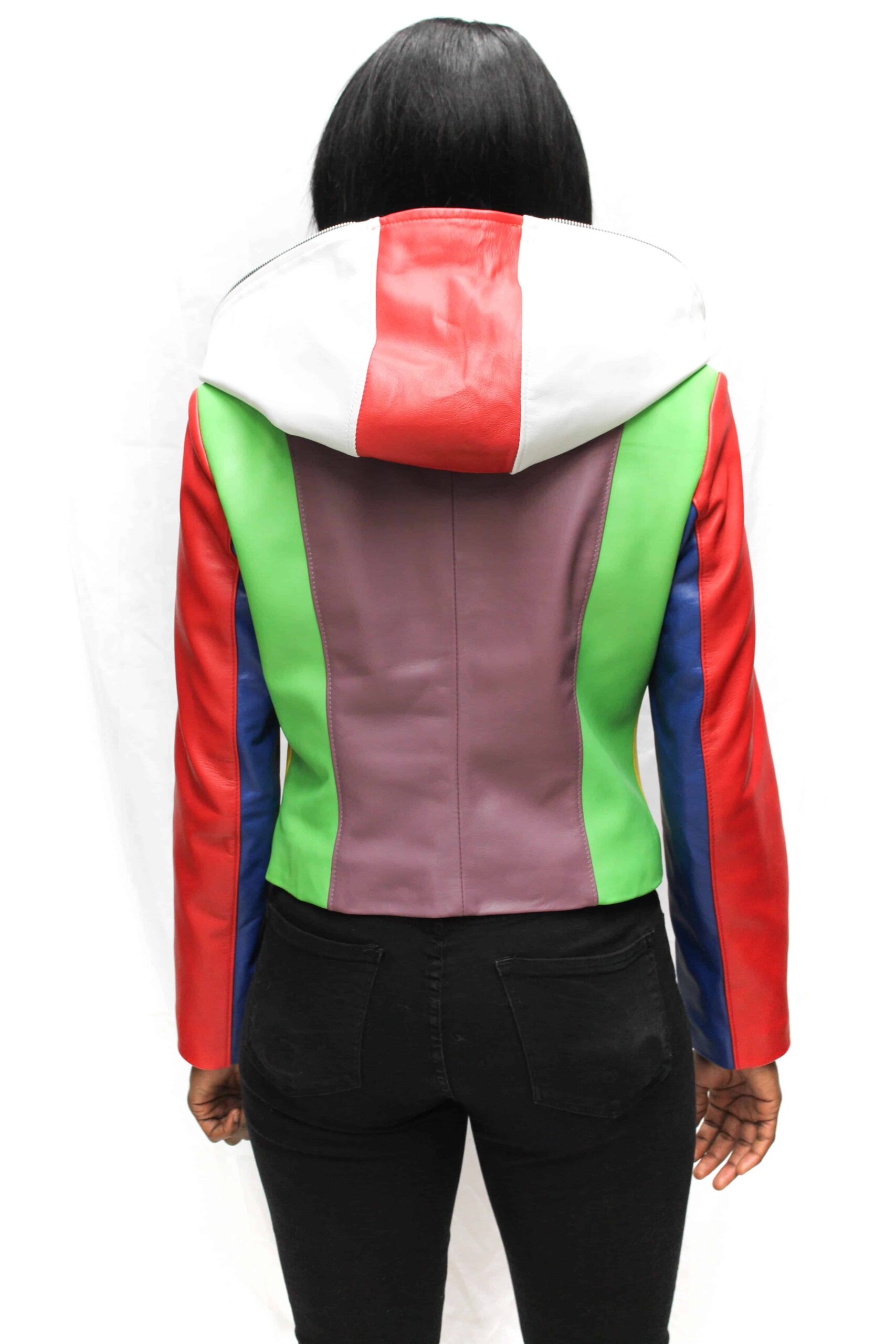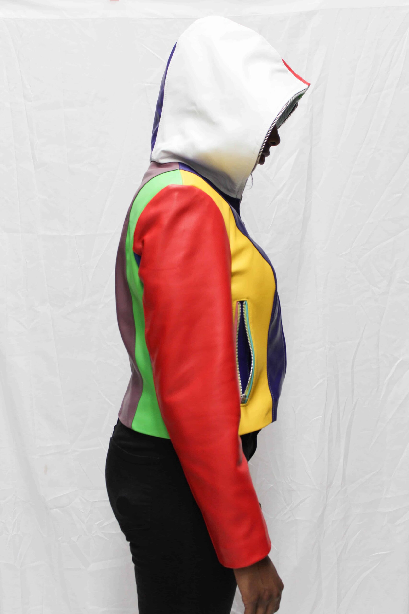 You can revamp the wardrobe with this Multi-Color Hooded Leather Jacket. This is sophisticatedly designed with Leather and inner viscose lining to make it more comfortable to wear.