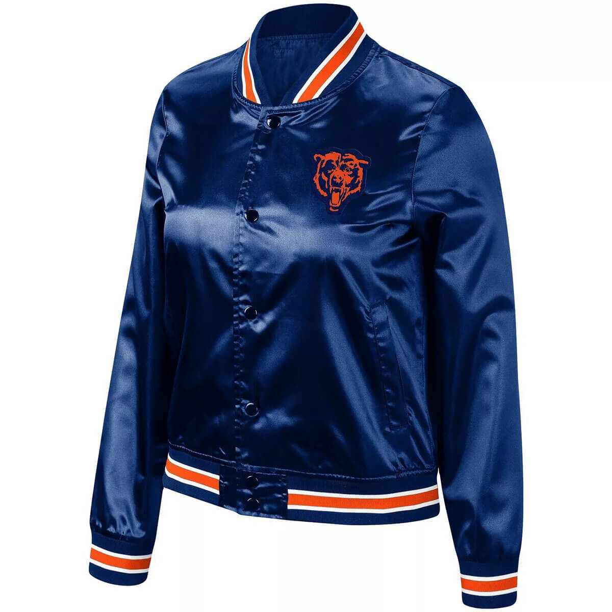 Through thick and thin, you’ll always be a supporter of the Chicago Bears. Now throw it back to the good old days by picking up this stylish Navy Chicago Bears Lightweight Full Snap Jacket by JacketsMaker. Compared to your regular jacket, this flashy piece features soft, satin material and Chicago Bears graphics that will easily help represent your longtime allegiance to the squad.