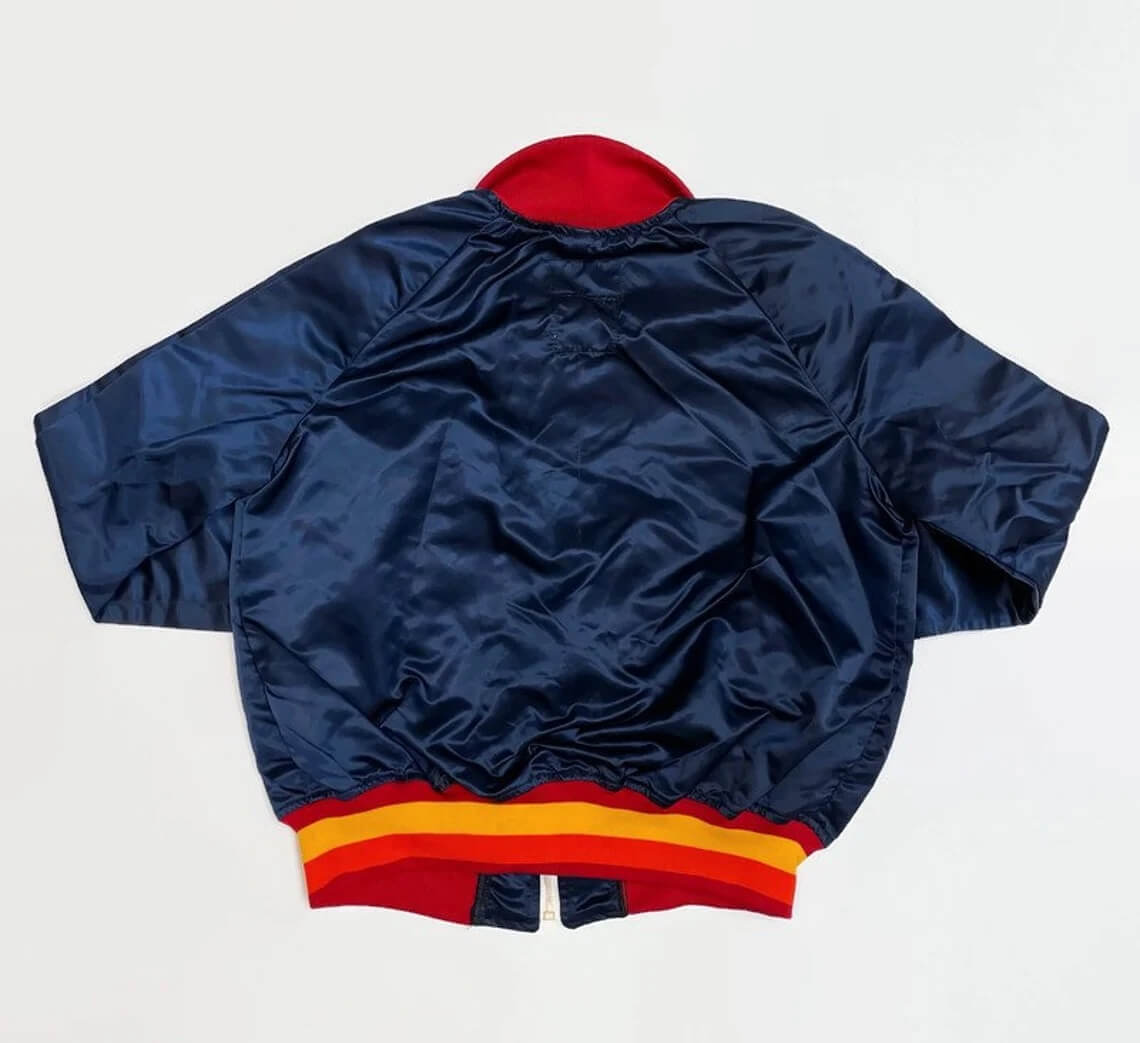 This Navy Houston Astros Bomber Satin Full Zip Jacket has an easy YKK Branded zipper closure along with a rib-knit collar. It has two side waist pockets that will not only help you to keep your personal belonging but will also keep your hands warm in the winter season and two pockets inside make it more convenient. The Houston Astros Jacket has long sleeves with rib-knit cuffs.