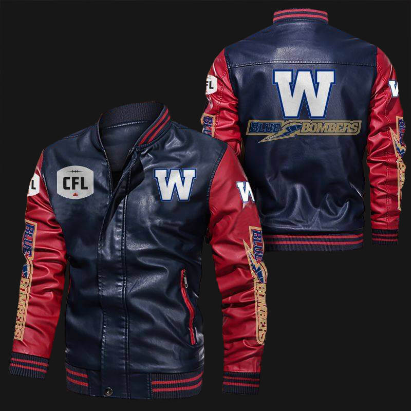 Navy Red Winnipeg Blue Bombers Leather Bomber Jacket