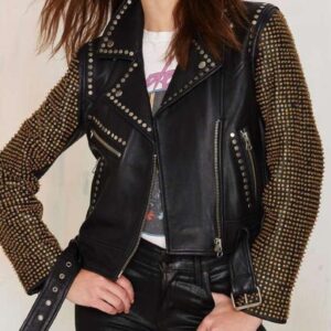 Featuring a snap-button closure for easy wear, this jacket includes two side waist pockets for storing essentials or keeping hands warm during chilly evenings. The sleeves, crafted from supple leather, add a luxurious touch and enhance the jacket’s durability.