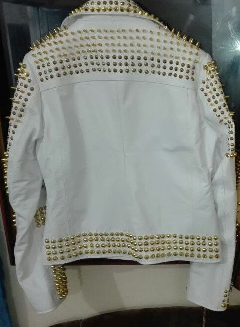 New White Full Golden Studded Leather Women Fashion Jacket’s Specifications: