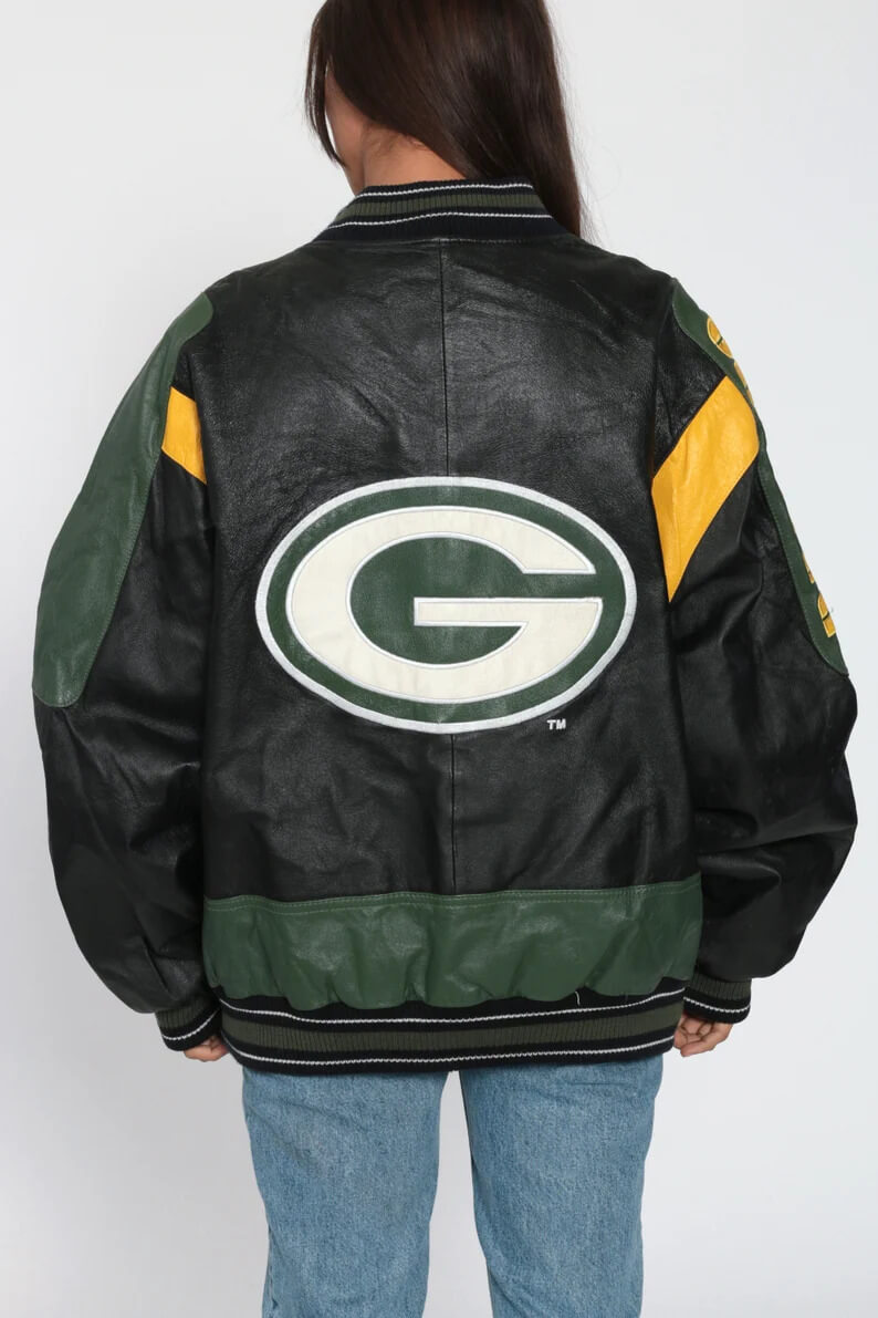 Through thick and thin, you’ll always be a supporter of the Green Bay Packers. Now throw it back to the good old days by picking up this awesome Green Bay Packers Football Leather Jacket by Maker of Jacket. Compared to your regular jacket, this flashy piece features soft, leather material and Green Bay Packers graphics that will easily help represent your longtime allegiance to the squad.