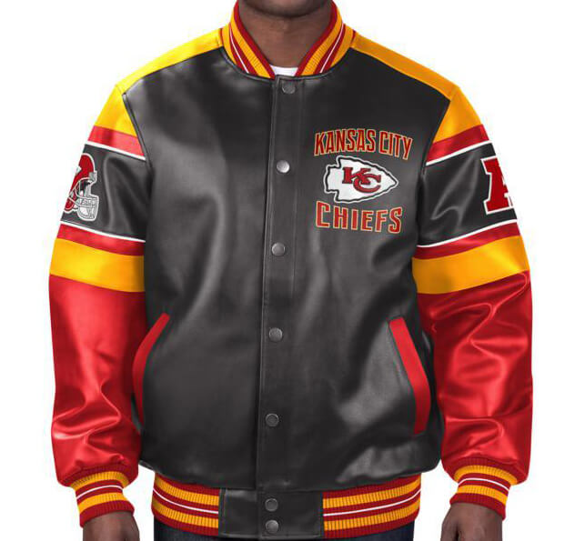 This “ Kansas City Chiefs Multicolor Leather Jacket” is made from high-quality leather material. It has an inner lined soft and comfortable Viscose stitched that keeps you warm in the cold and chilly weather. It has a front Button Style for its closure with a Rib knitted collar that makes it a retro classic. The Jacket has a Multicolor that makes it stand out. The Rib knitted cuffs and Rib knitted hemline also look attractive. The Jacket has Two Side Handwarmer pockets. The Kansas City Chiefs logo on the left chest and on the back looks very beautiful. The jacket is durable to wear due to its fine quality stitching.