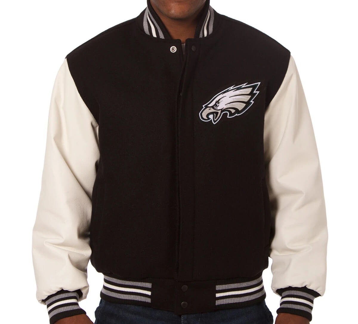- Philadelphia Eagles Logo on the left chest and on the back.