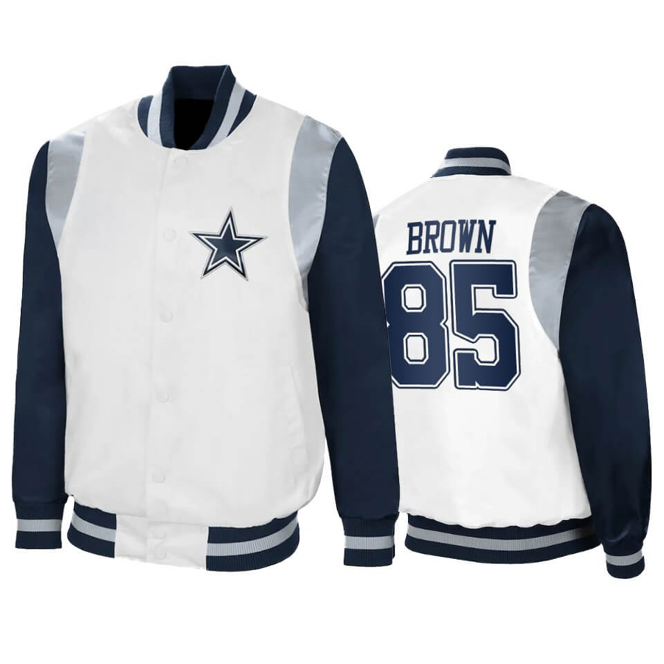 This “Noah Brown Dallas Cowboys Satin Jacket” is made from high-quality satin material. It has an inner lined soft and comfortable Viscose stitched that keeps you warm in the cold and chilly weather. It has a front Button Style for its closure with a Rib knitted collar that makes it a retro classic. The Jacket has a White, Blue, and Gray color that makes it stand out. The Rib knitted cuffs and Rib knitted hemline also look attractive. The Jacket has Two Side Handwarmer pockets. The Dallas Cowboys Logo on the left chest looks very beautiful. The jacket is durable to wear due to its fine quality stitching.
