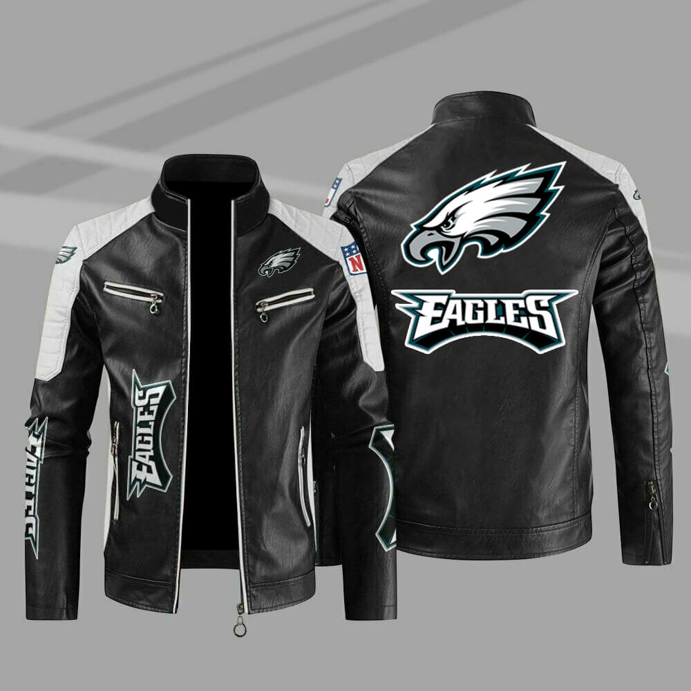 Philadelphia Eagles Black Color Block Leather Jacket