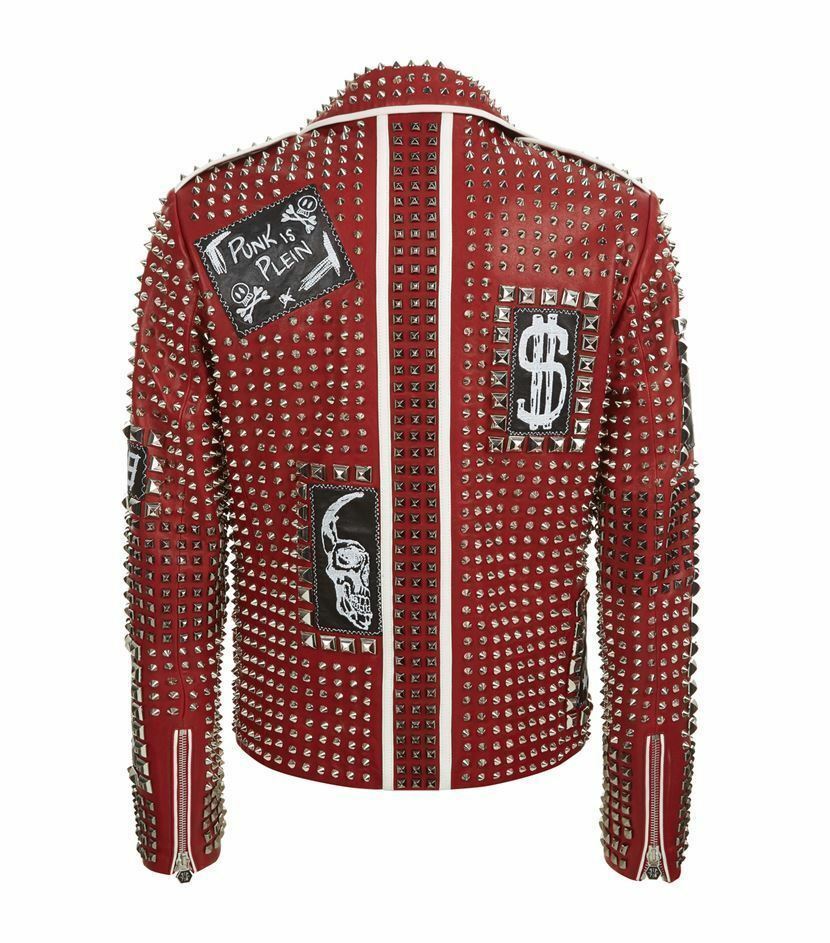 PHILIPP PLEIN Red Leather Studded Embroidery Jacket