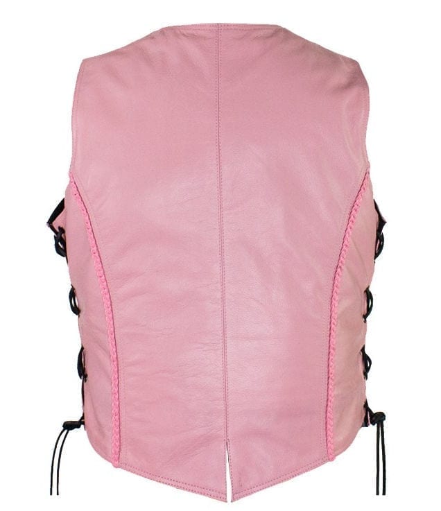 This is one of our pink leather vest with braids and side laces. Long list of features are: