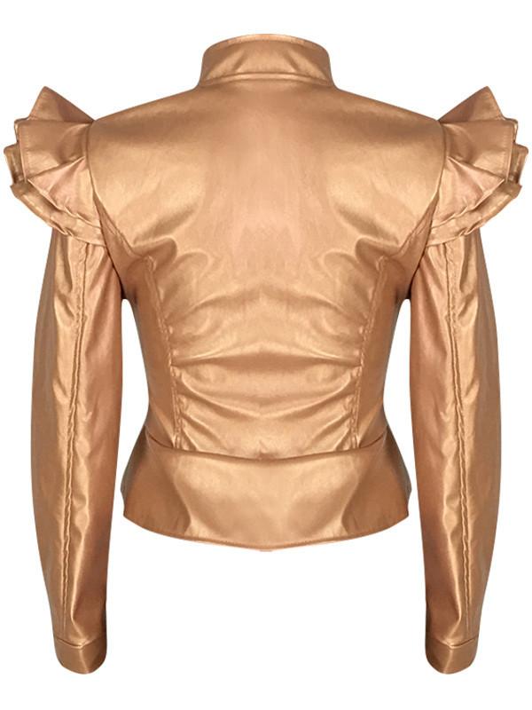 Plus Size Zip Up Ruffle Shoulder Leather Jacket
