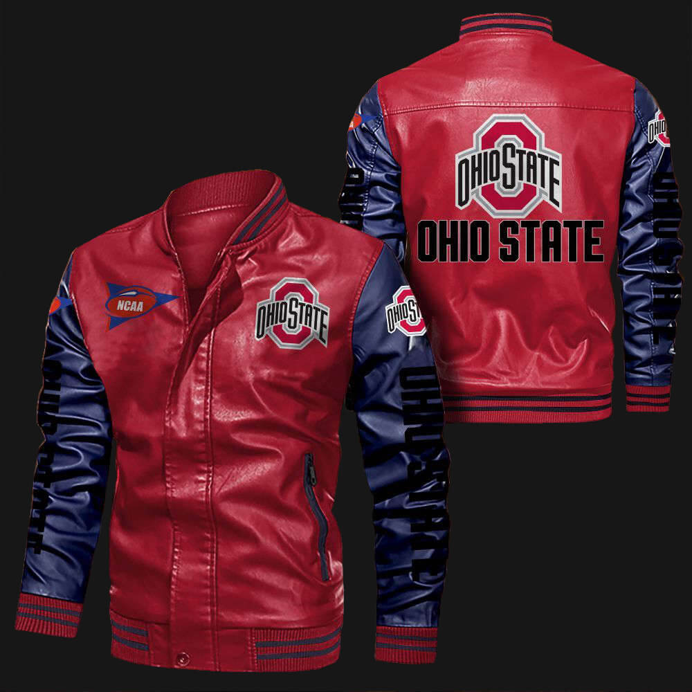 Red Blue Ohio State Buckeyes NCAA Bomber Leather Jacket