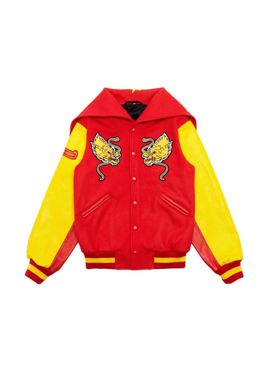 Red China Global Varsity Leather Jacket