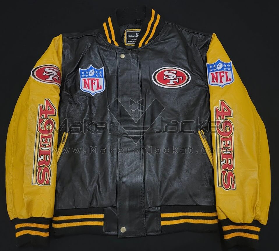 Whether you’re cheering from the stands or strutting through the city streets, our San Francisco 49ers Bomber Jacket is your ultimate companion, blending sports style with streetwise swagger. Flaunt your fandom with finesse and conquer the fashion game, one touchdown at a time