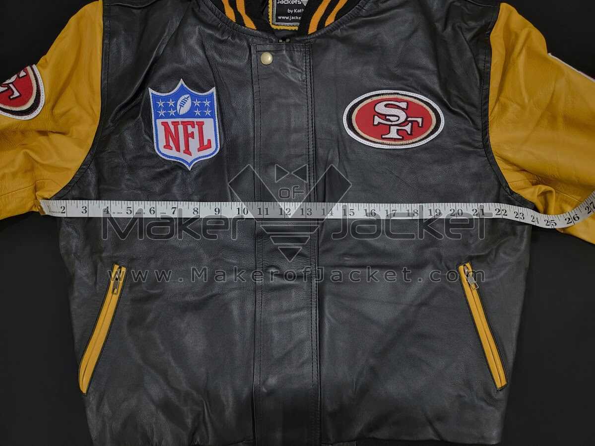 With its sleek black exterior and vibrant yellow accents, this jacket not only showcases your allegiance to the 49ers but also exudes a timeless charm that transcends trends.