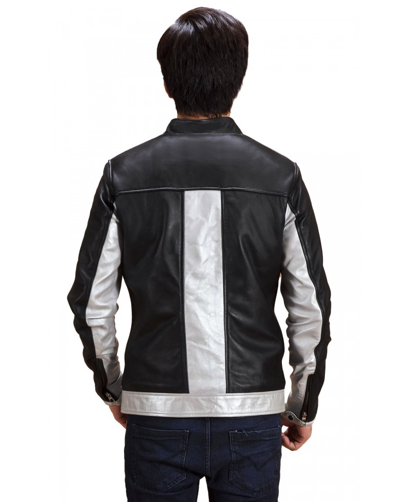 Silver Panel Cafe Racer Leather Jacket