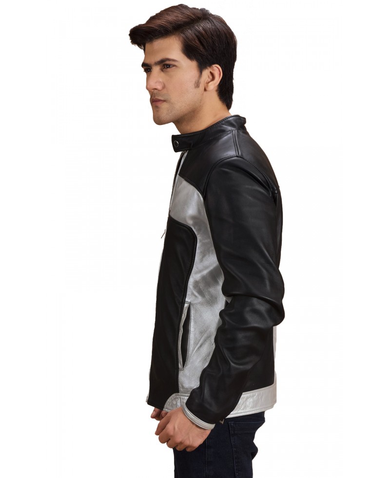 IRTEKA SILVER PANEL CAFE RACER LEATHER JACKET’S DETAILS
