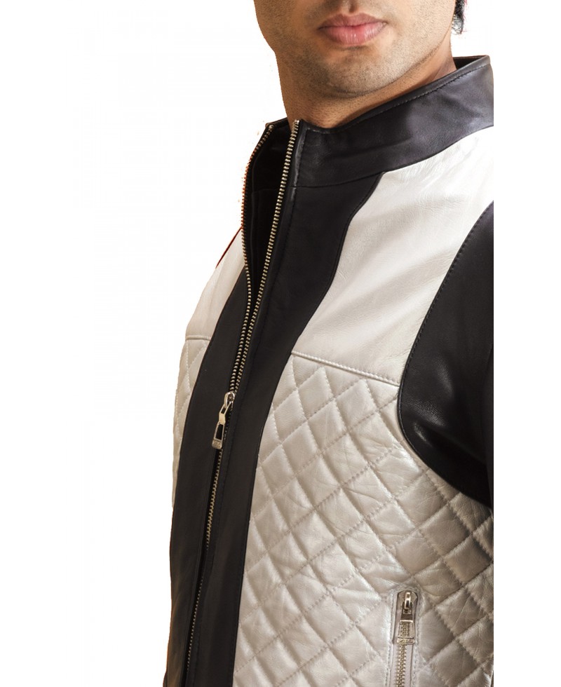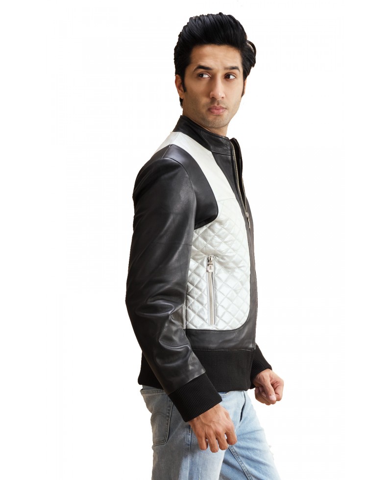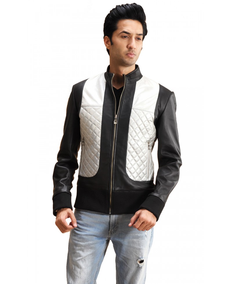 Irteka Silver Quilt Black Leather Bomber Jacket’s HIGHLIGHTING FEATURES