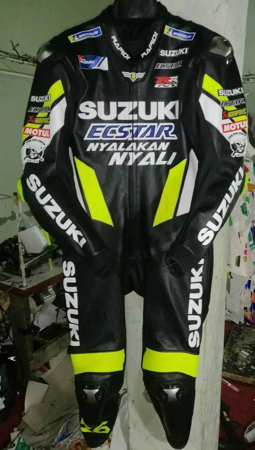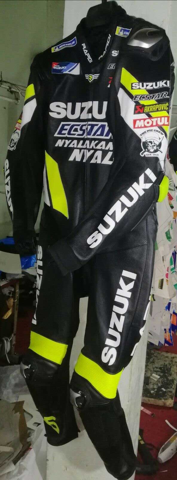 Suzuki Ecstar Motorcycle Black Leather Suit