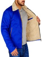 Inspired by Tom Hardy’s effortlessly cool look in The Drop, this jacket is crafted from cotton fabric for lightweight comfort, while the soft shearling collar adds a rugged yet cozy touch. The bold blue color ensures you make a statement, and the front zipper closure completes the stylish design. Additioanlly, the practical side pockets make it as functional as it is fashionable.